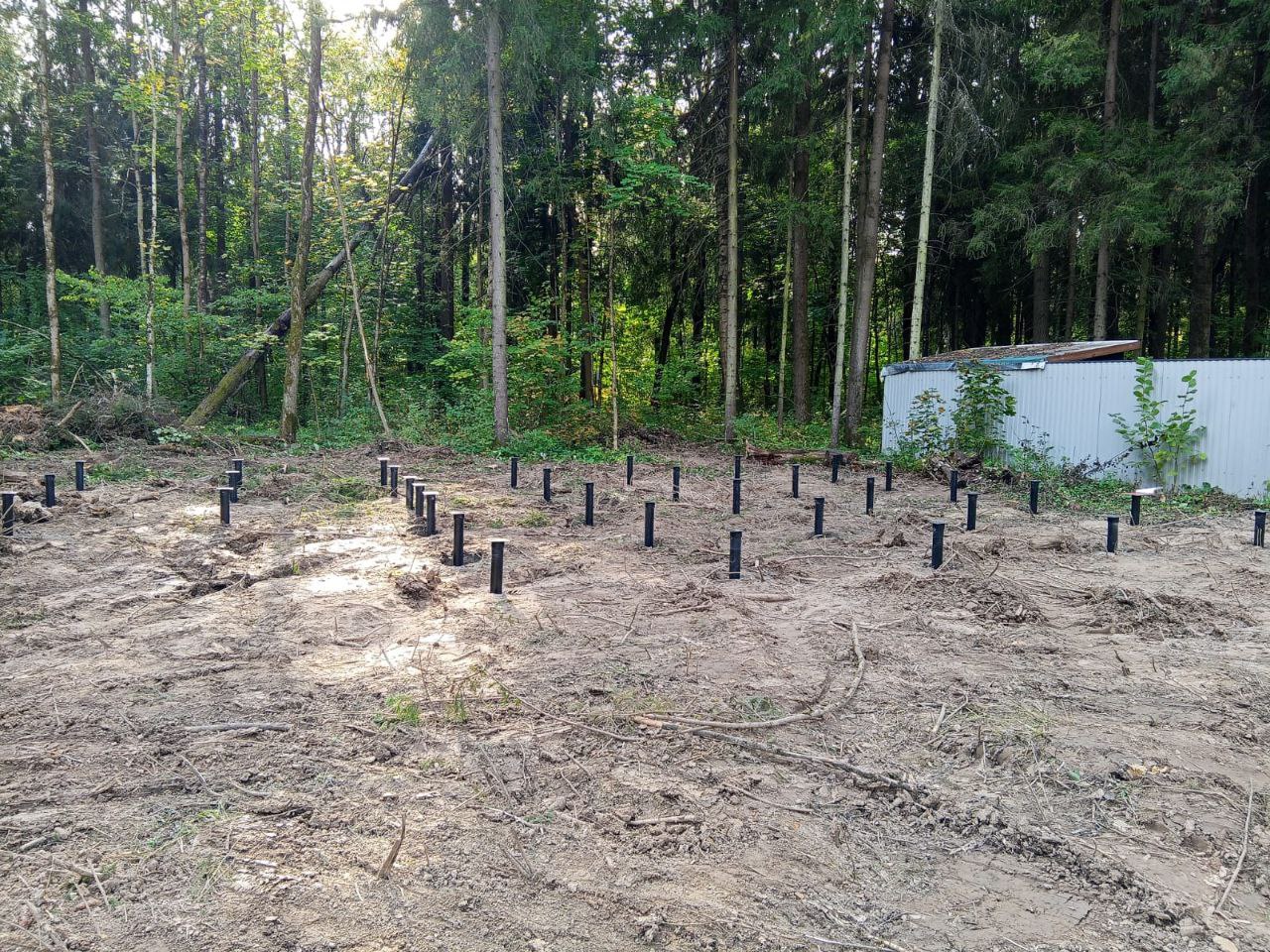 Свайно-винтовой фундамент из 34 свай, закручены до плотного грунта